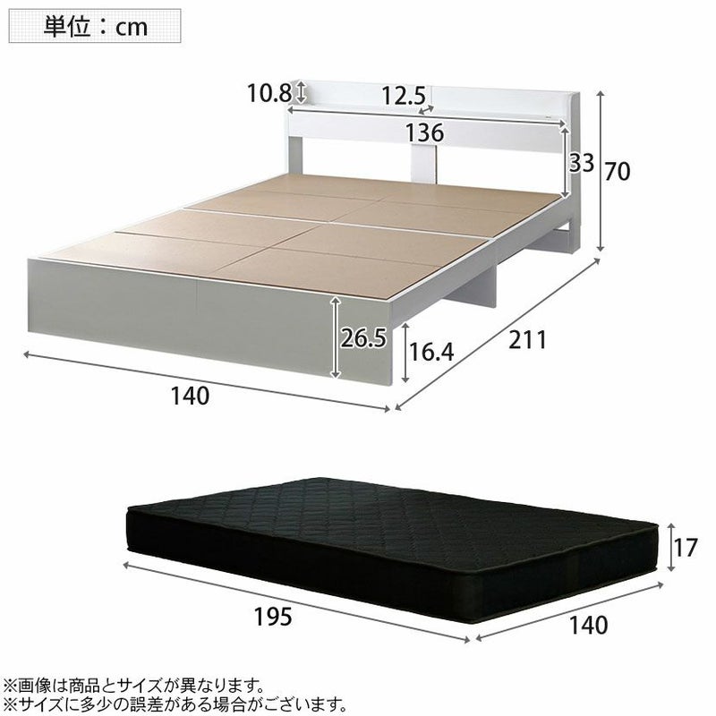 | サイズ | ベッドフレーム / 幅1400×奥行2110×高さ700mm マットレス / 幅1400×奥行1950×高さ170mm |