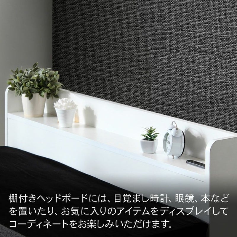 シンプルなデザインでも機能をしっかり持ったマットレス付きベッドです。フレームカラーは高級感のあるホワイトと、しっとりと落ち着いたブラックの2色展開です。