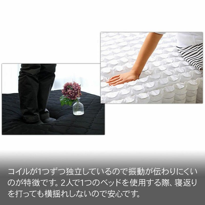 コイルが1つずつ独立しているので振動が伝わりにくいのが特徴です。2人で1つのベッドを使用する際、寝返りを打っても横揺れしないので安心です。体を点で支えるため、お尻や肩の重たい部分が沈み、無理のない自然な体勢で体にフィットします。