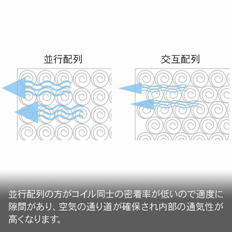 並行配列の方がコイル同士の密着率が低いので適度に隙間があり、空気の通り道が確保されマットレス内部の通気性が高くなります。