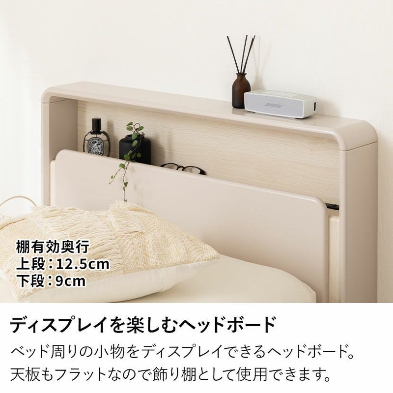ベッド周りの小物をディスプレイできるヘッドボード。天板もフラットなので飾り棚として使用できます。