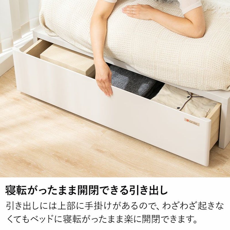 引き出しには上部に手掛かりがあるので、わざわざ起きなくてもベッドに寝転がったまま楽に開閉できます。