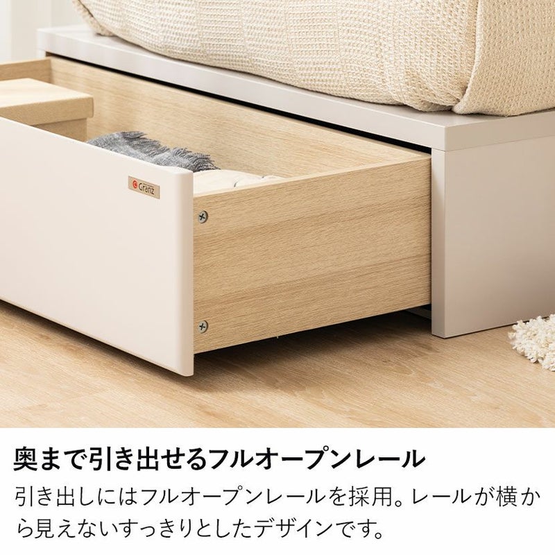 引き出しにはフルオープンレールを採用。レールが横から見えないすっきりとしたデザインです。