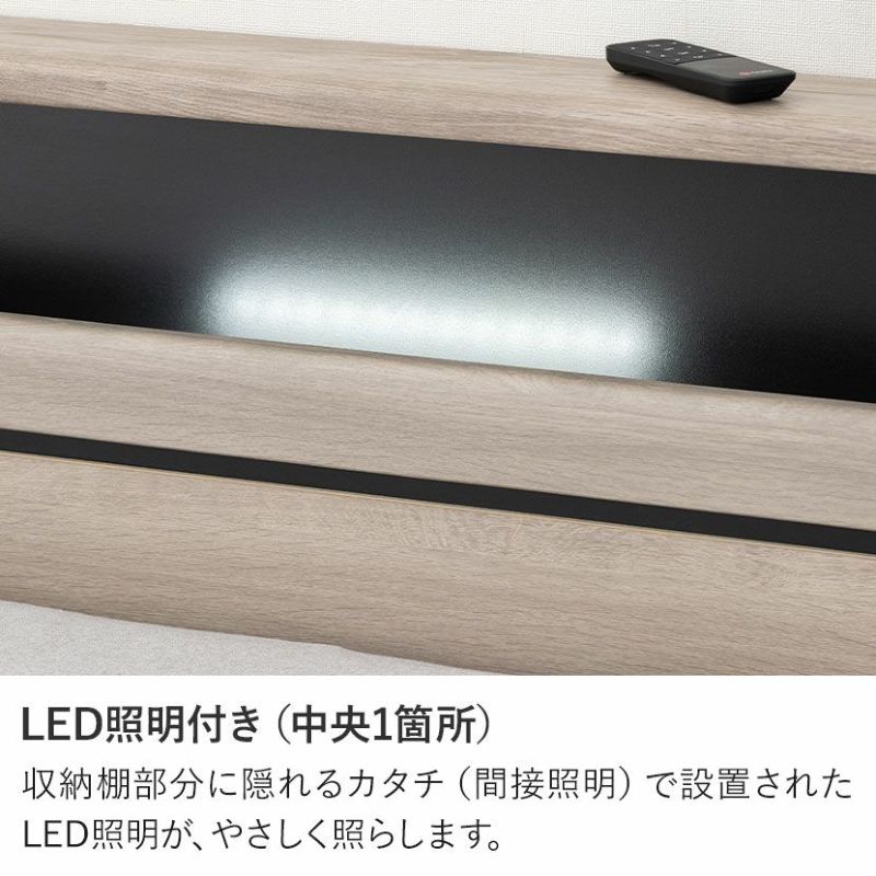 収納棚部分に隠れるカタチ(間接照明)で設置されたLED照明が、やさしく照らします。