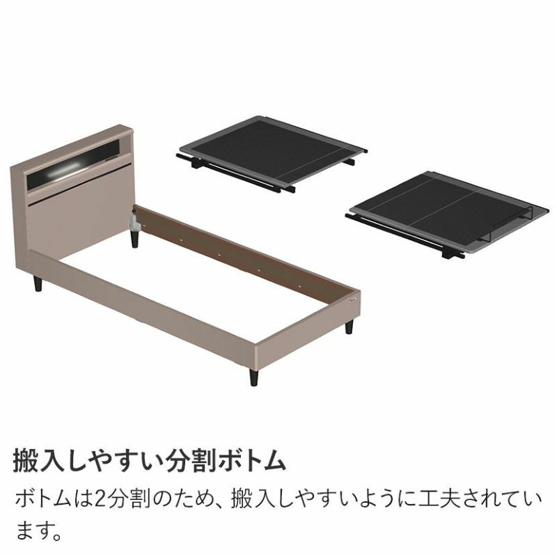 ヘッドボードの収納棚部分には1口コンセントが付いています。ホコリなどが入りにくいスライドカバー仕様。