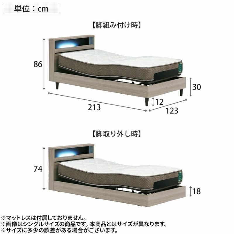 脚部組付けで床面高さが選べます。ロータイプ時は厚手のマットレスにも対応できます。
