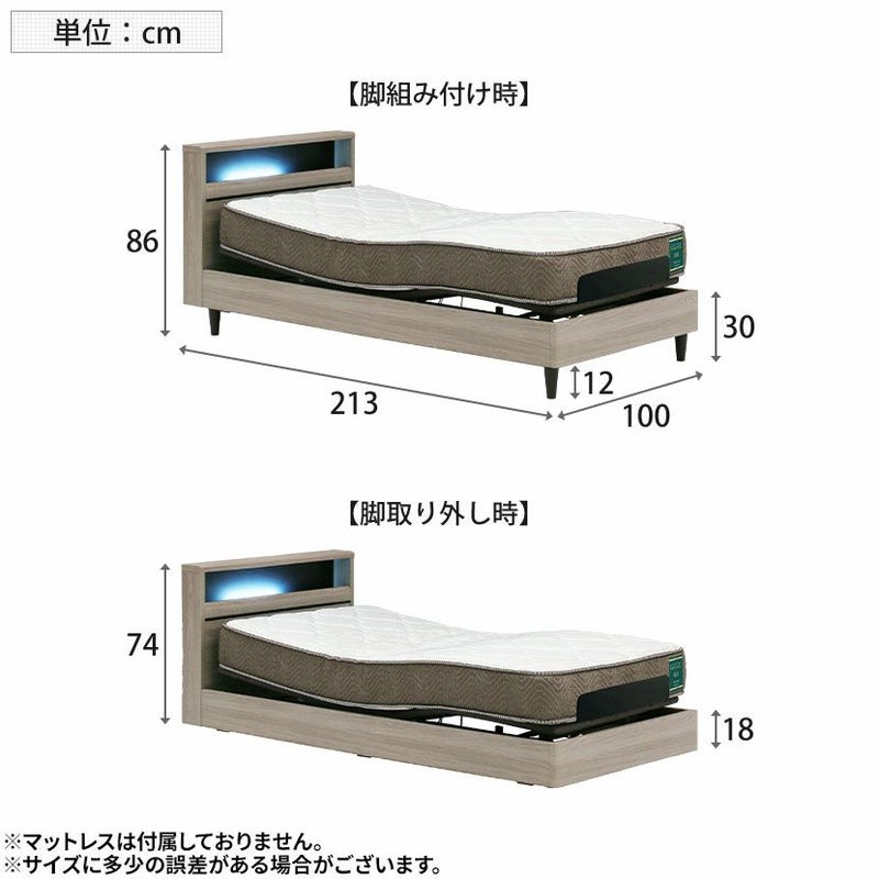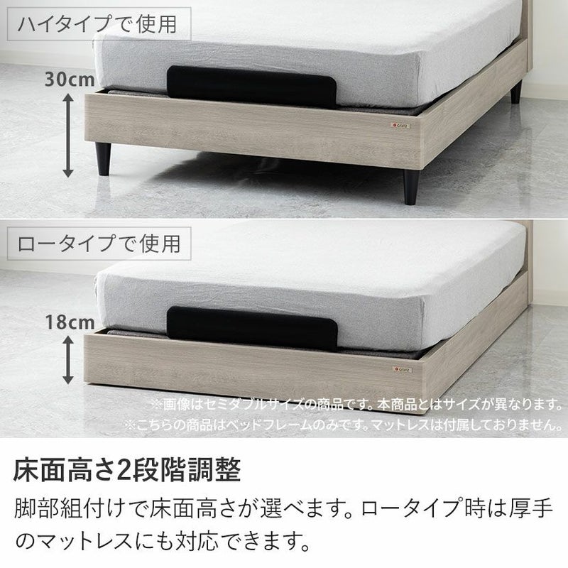 脚部組付けで床面高さが選べます。ロータイプ時は厚手のマットレスにも対応できます。