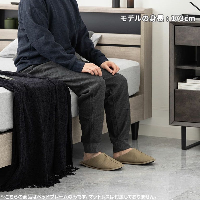 ベッド周りの小物を整理できる収納棚付き。左右の段違いの部分も飾り棚として使用できます。