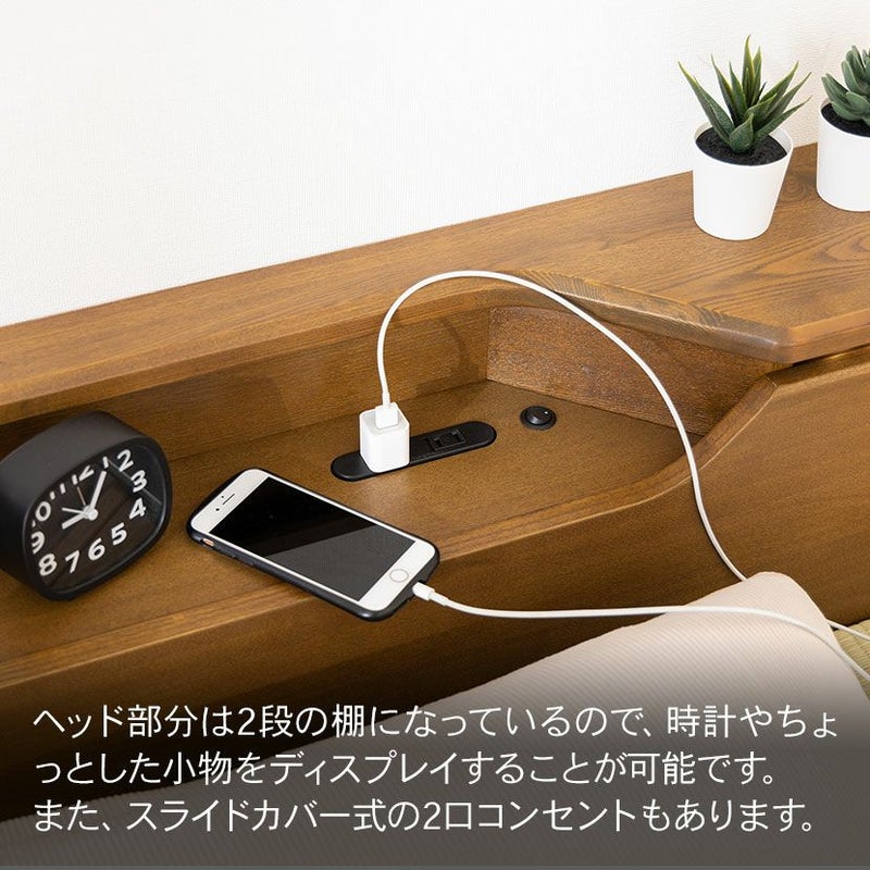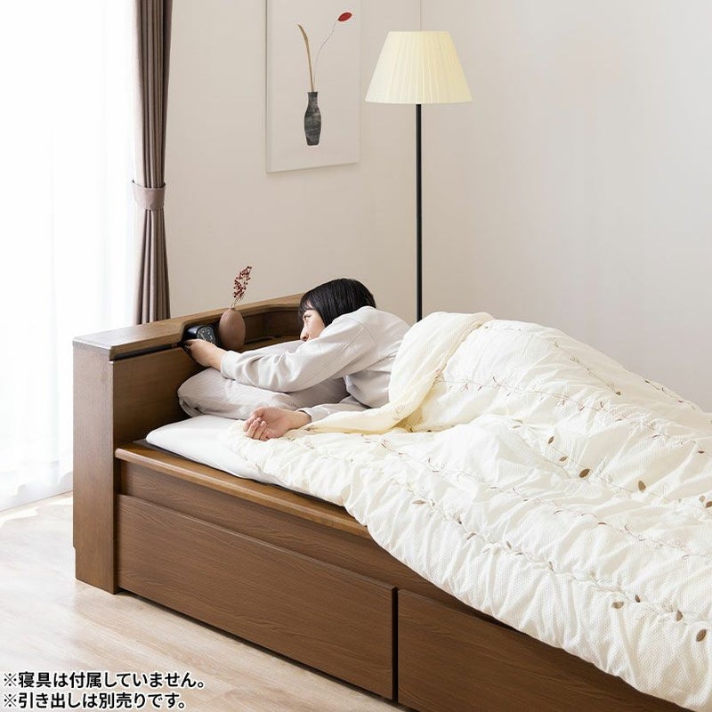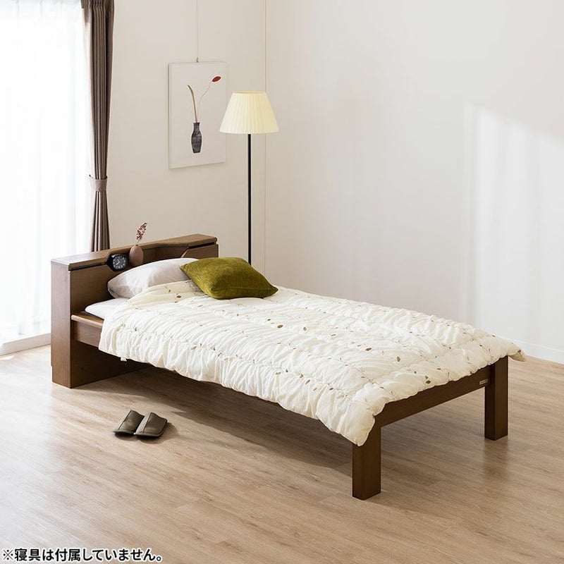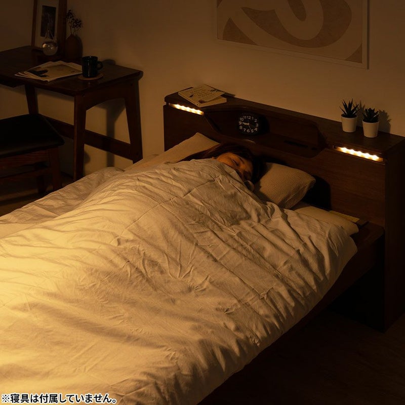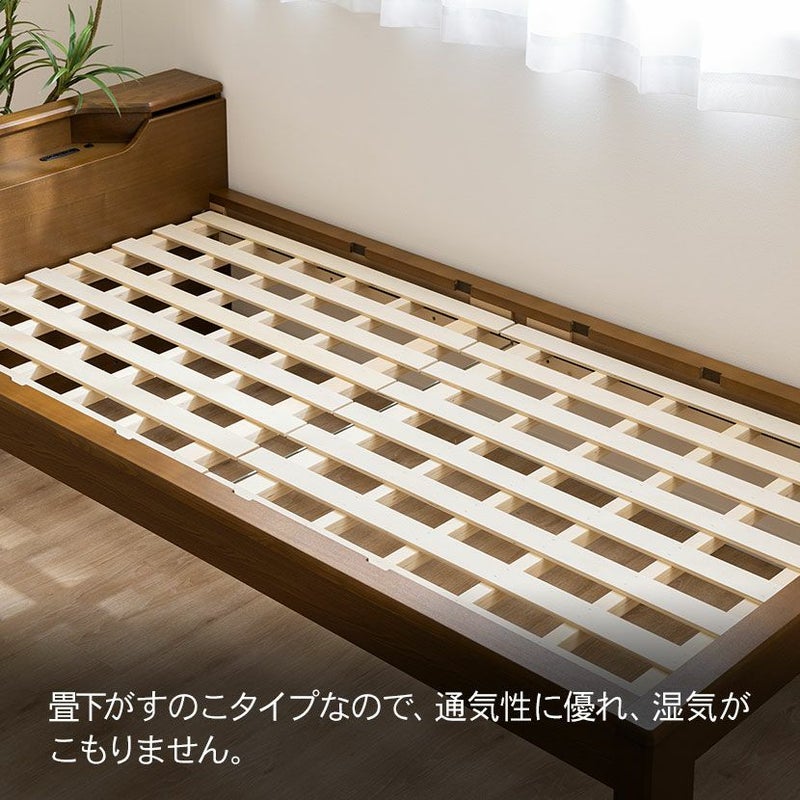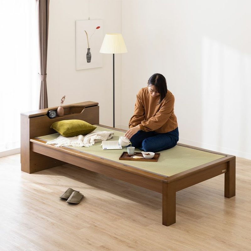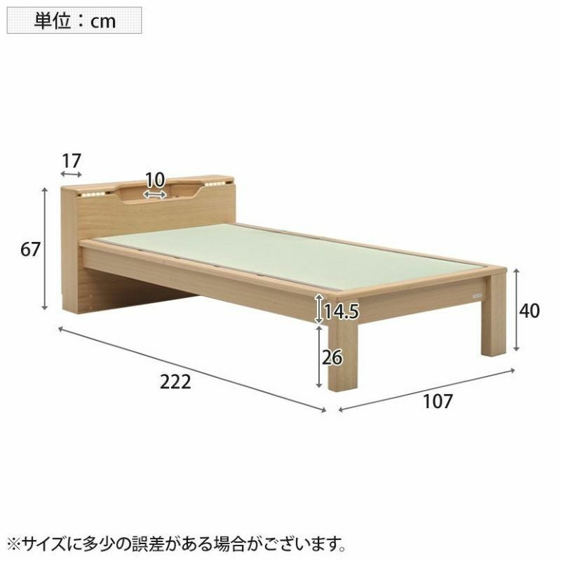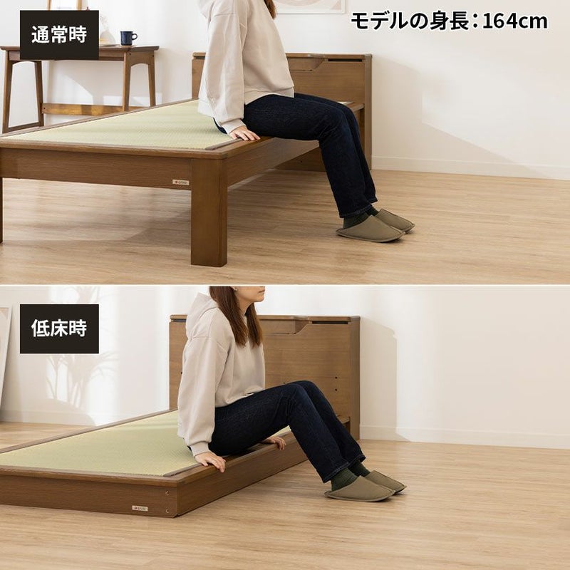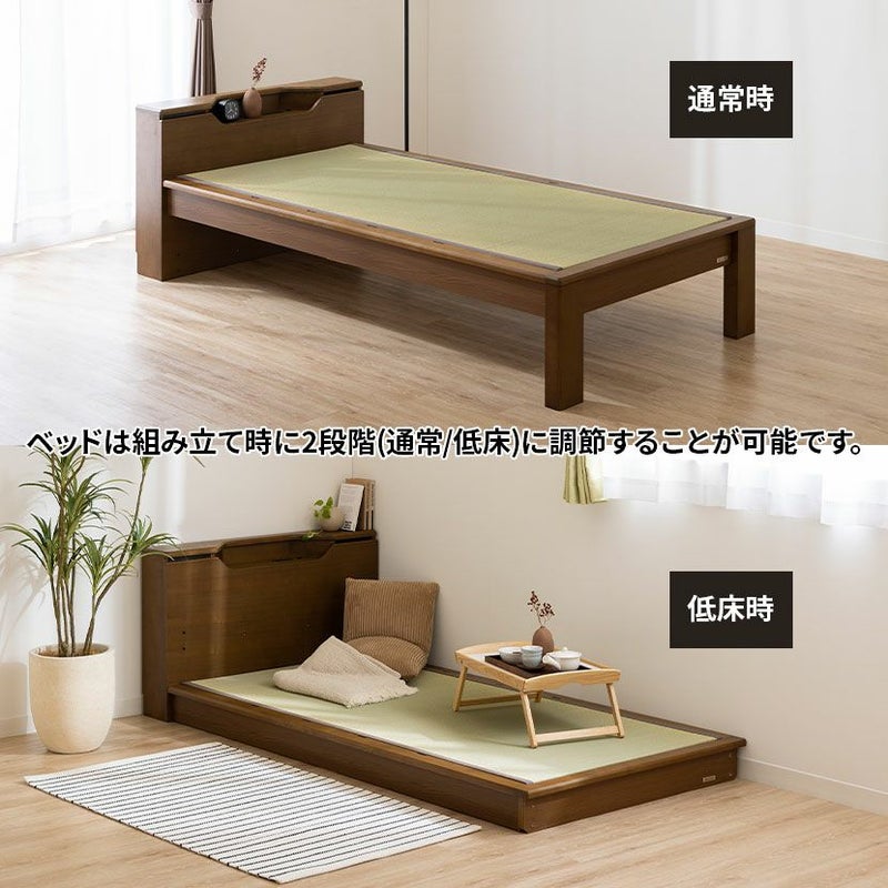 シングル ベッドフレーム スミカ 畳ベッド 棚付き LED照明 高さ調節可能 すのこ 国産本畳 天然イ草木製 コンセント付 ロータイプ可 幅木よけ ナチュラル ブラウン