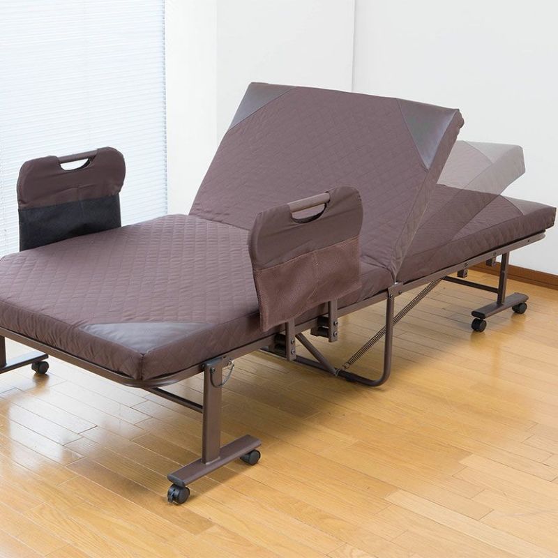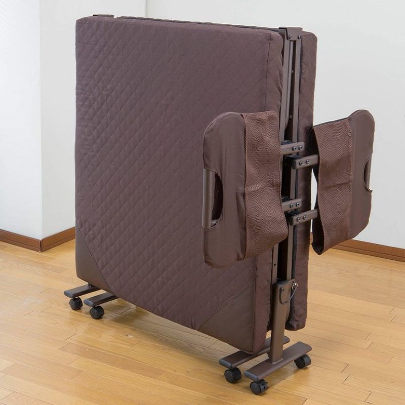 ●立ち座りが楽なマットレスの高さ43cm、手すり付き折りたたみベッドです。