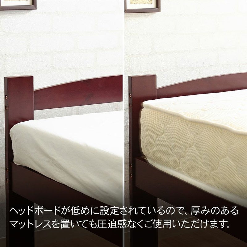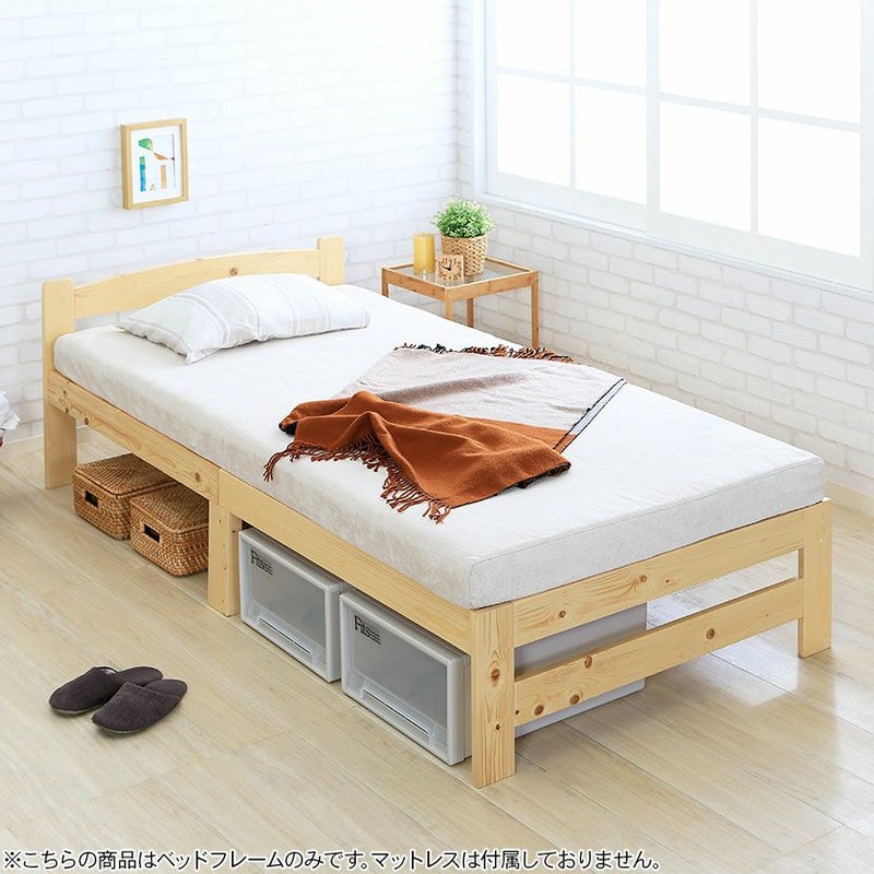 その天然木を使った木目が美しいベッドは、お部屋に溶け込む落ち着いた雰囲気を演出してくれます。