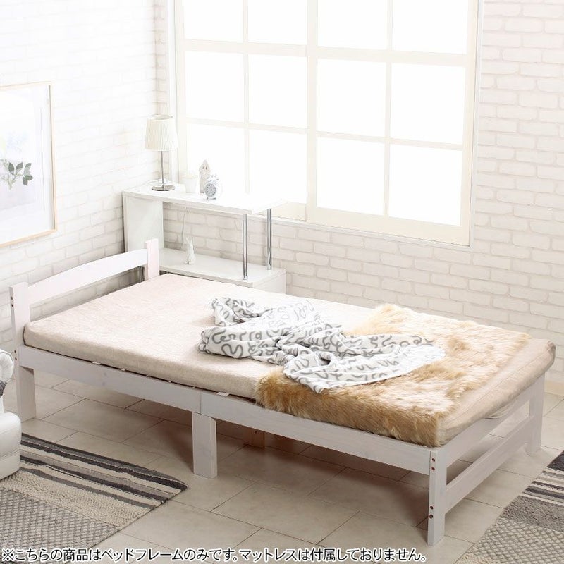 パイン材の素材を生かした、柔らかな質感ときれいな木目の「すのこベッド」。
