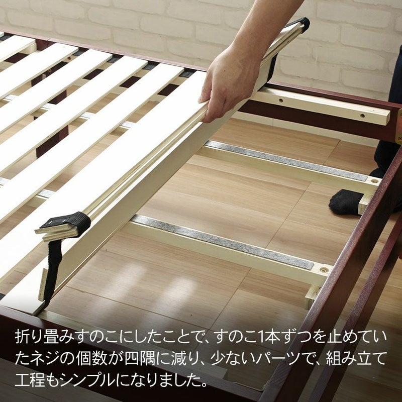 折り畳みすのこにしたことで、すのこ1本ずつを止めていたネジの個数が四隅に減り、少ないパーツで、組み立て工程もシンプルになりました。