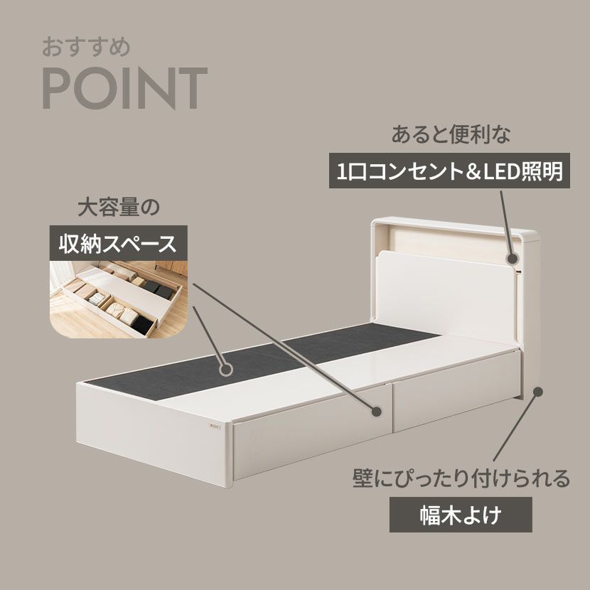 他の画像を見る シングル ベッドフレーム ドレース 〔サイドBOX〕 LED 照明付き ベッド コンセント付き 収納付き おしゃれ シンプル モダン ホワイト グレージュ ダークグレー クーポン対象 クーポン対象 送料無料 送料無料 組立設置サービス有 組立設置サービス有 ¥ 54,800 税込 詳細を見る