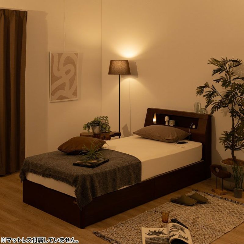 シングル ウォルテ ベッド 木製 寝室 ベッドフレーム Lキャビタイプ 引き出し付き ナチュラル ブラウン