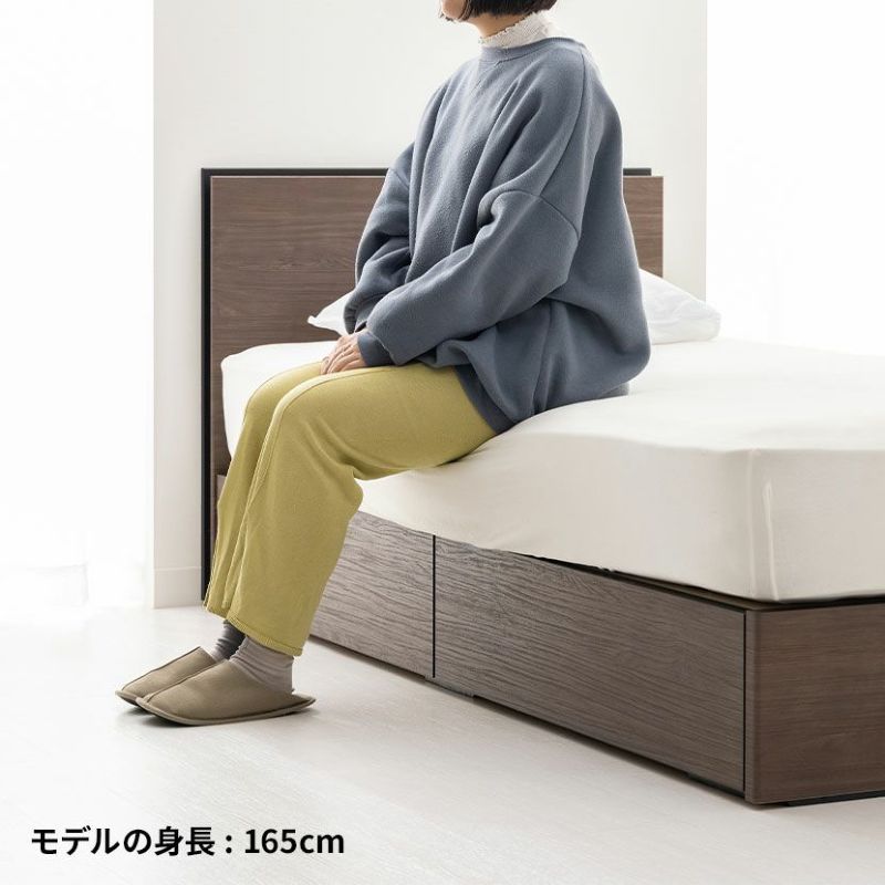 低ホルムアルデヒド(F☆☆☆☆)の人に優しい素材のみを使用しています。フラットなヘッドボードなので、2台並べて使用しても境目が分かりづらく、すっきりとした印象です。白みがかった色味のグレー木目と、落ち着いた色味のウォルナット木目の2色からお選びいただけます。