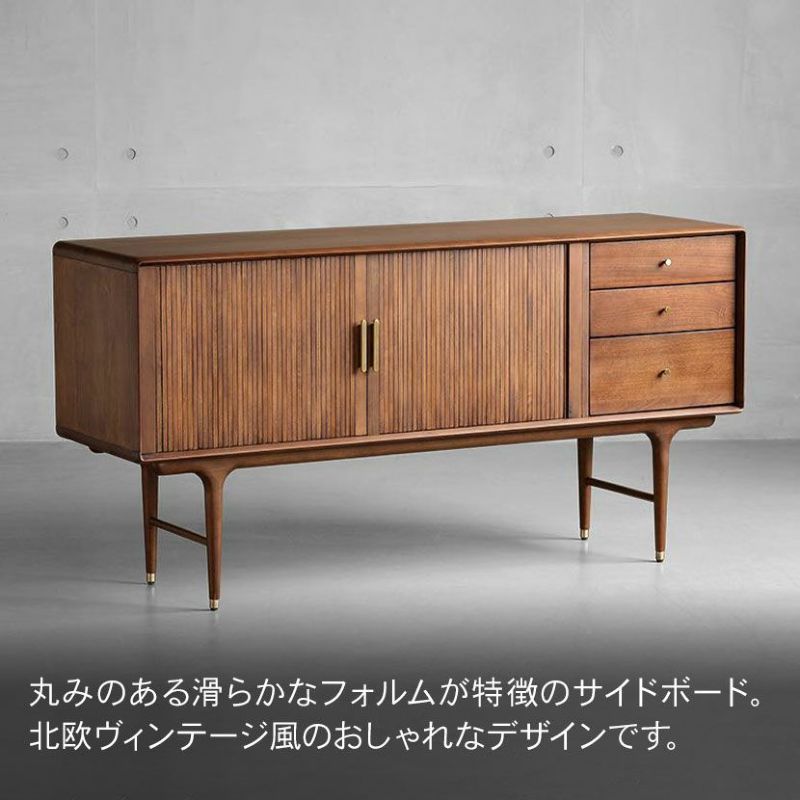 丸みのある滑らかなフォルムが特徴のサイドボード。