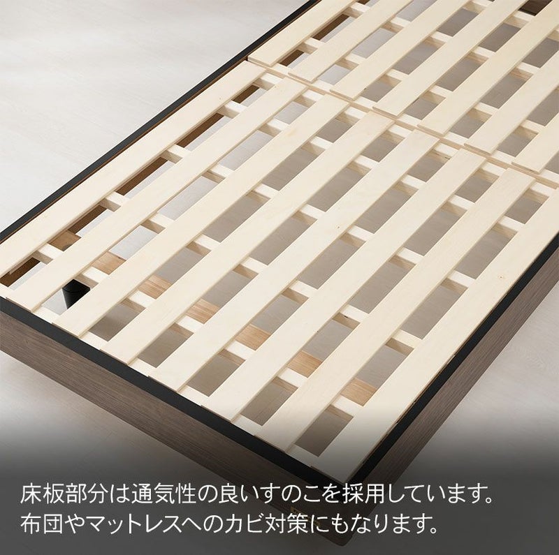 ●湿気のたまりやすいベッドの床板には、通気性のいいスノコを採用しています。