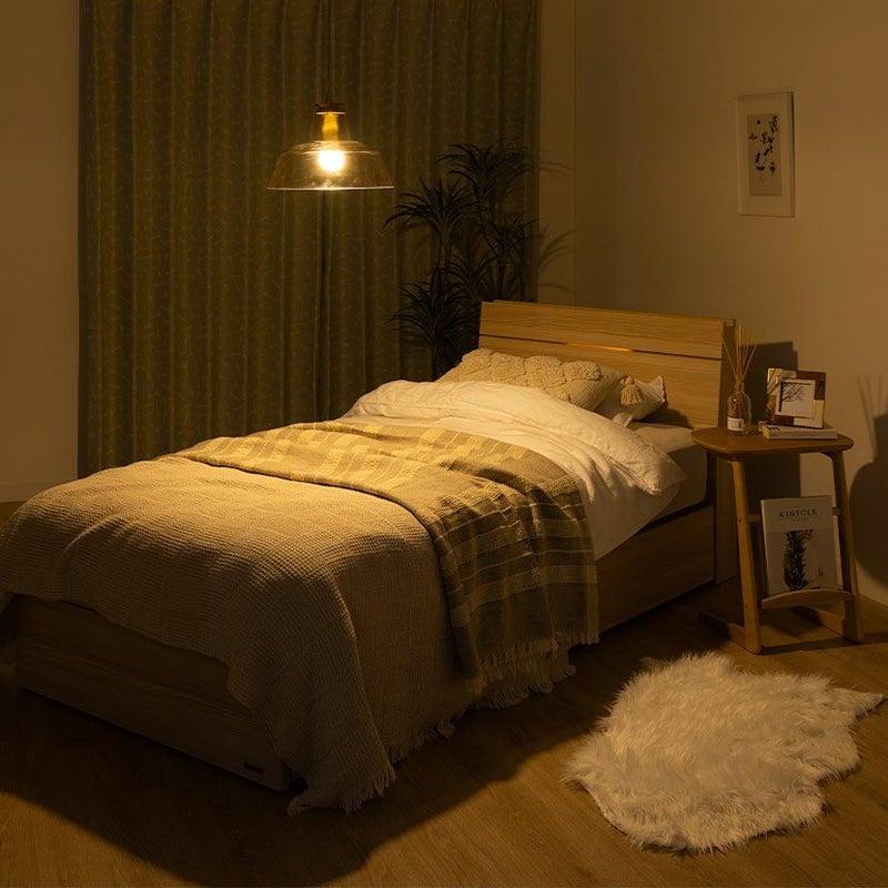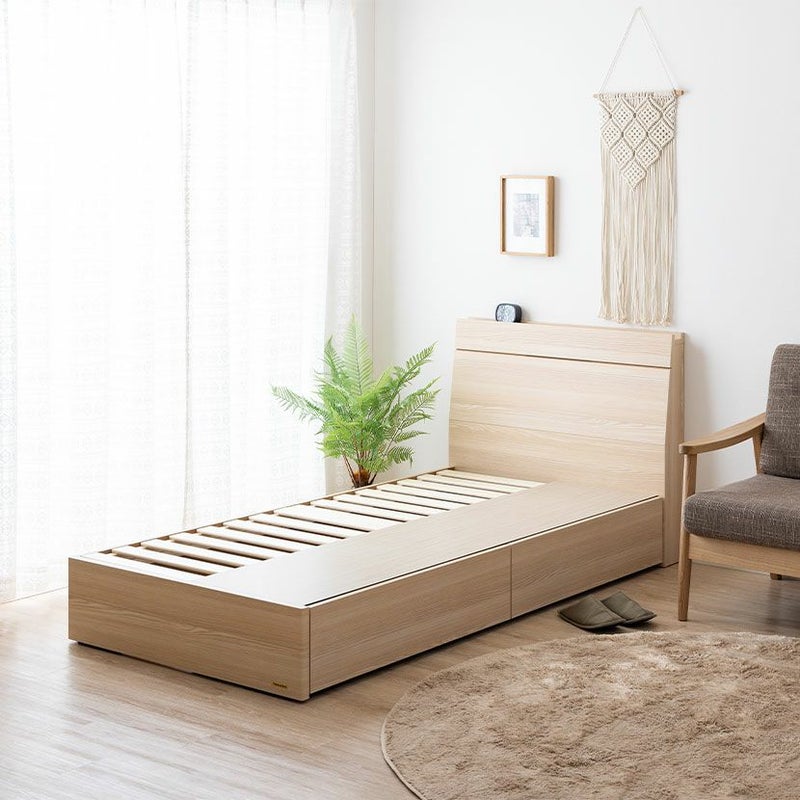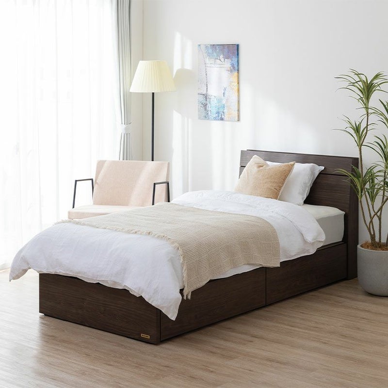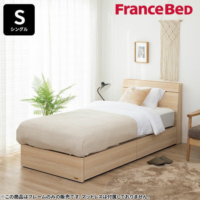 【設置無料】フランスベッド シングルサイズ ベッド フレーム Eddy エディ EY-02C DR 引き出し 引出し 収納 キャビネット 棚付き 宮付き コンセント 充電 照明 ライト LED すのこ 日本製