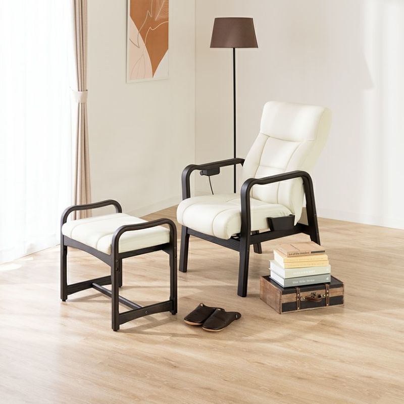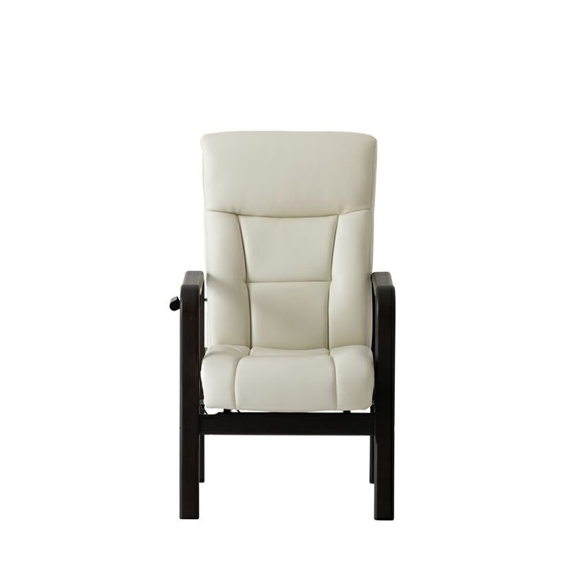 【設置無料】冨士ファニチア 楽々チェア Comodo 座面高さ42cm ソフトレザー張り 肘付き 天然木 木枠 レバー式 ハイバック リクライニングチェア パーソナルチェア おしゃれ
