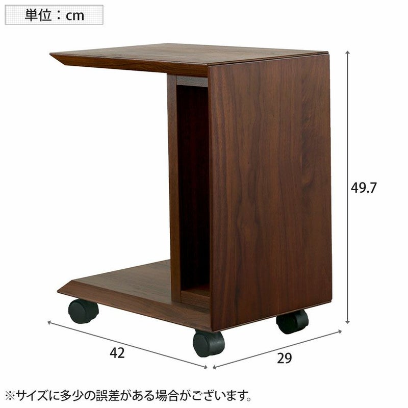 木製サイドテーブルは、コの字型の形状が特徴です。