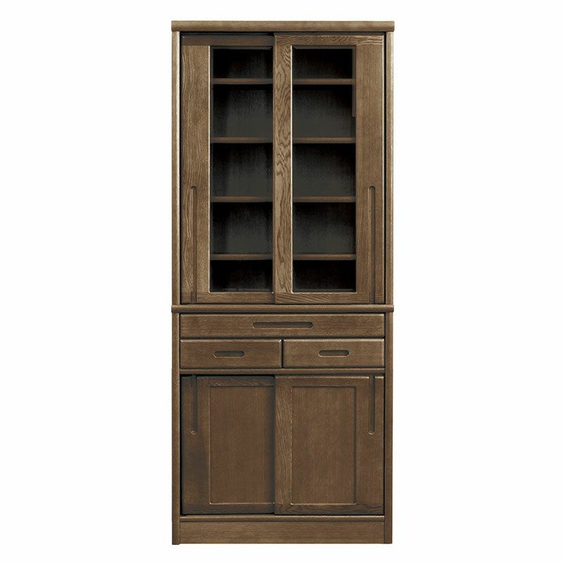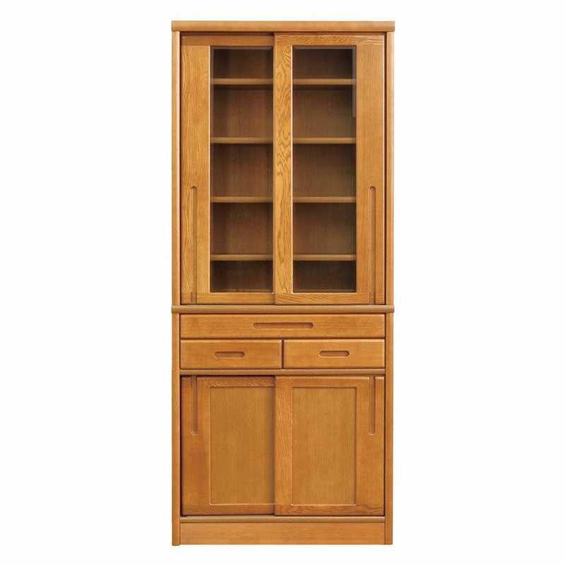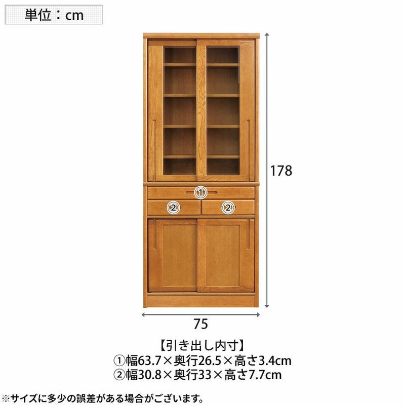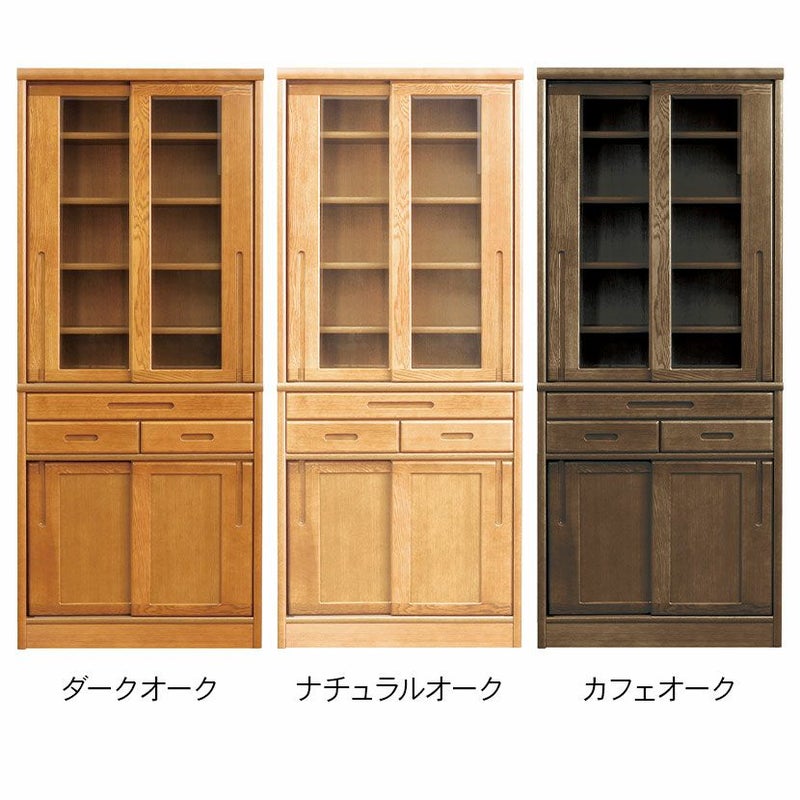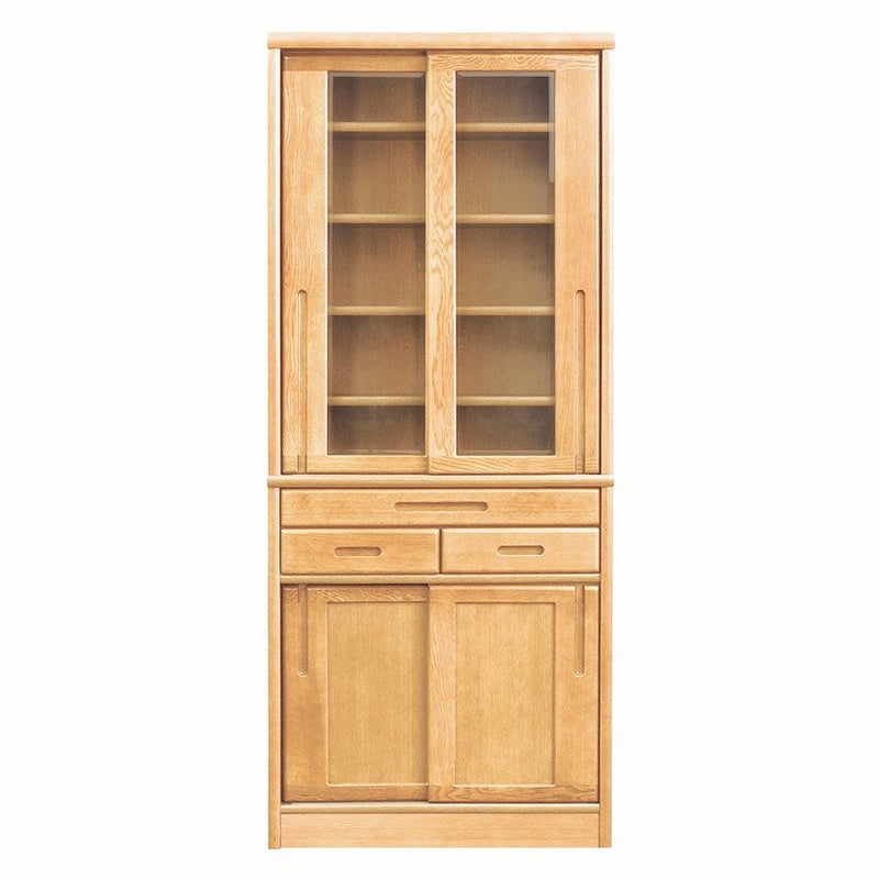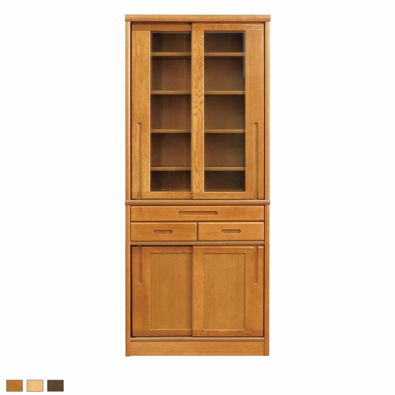 【設置無料】浜本工芸 幅75cm No.1500 食器棚 日本製 木製 天然木 ナラ材 ガラス扉 スライドテーブル付き 引き出し付き 収納 カップ ボード キッチンボード おしゃれ ナチュラル