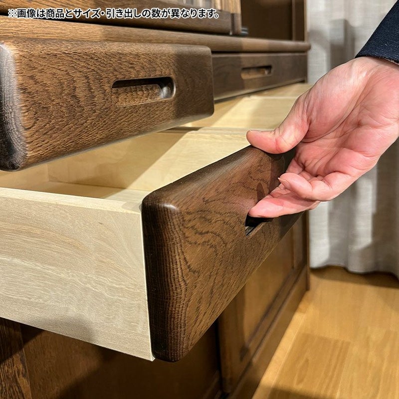 ●中央上段の引き出し内部には仕切り板が付いており、お箸やフォークなどを分けて収納可能です。(仕切り板は取り外し可能)