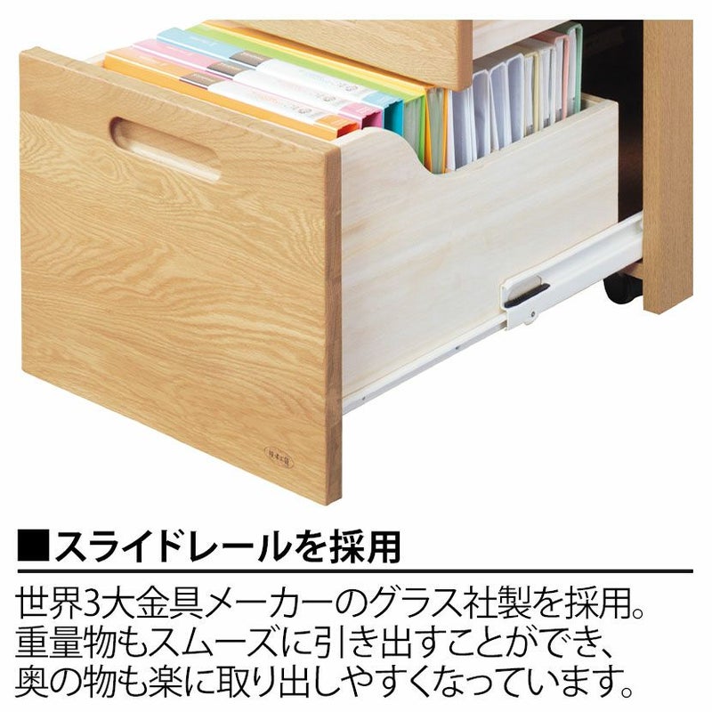 | サイズ | 外寸 / 幅420×奥行600×高さ590~730mm 引き出し内寸(上) / 幅313×奥行425×高さ142mm 引き出し内寸(下) / 幅313×奥行425×高さ238mm |