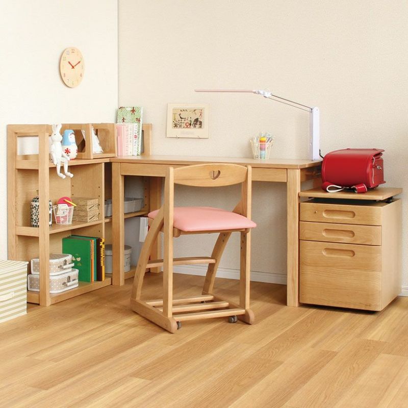 オーク無垢材の素材感を活かした大人になっても使いやすいシンプルなデザインです。