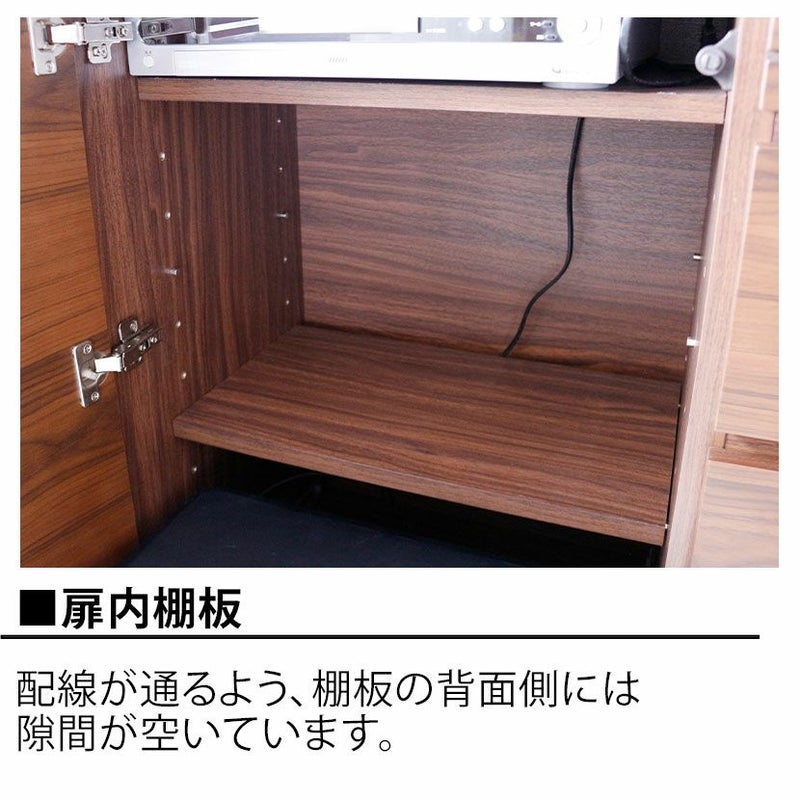 可動棚の背面側に隙間がある構造になっているので、棚板を付けたまま配線を通すことができます。