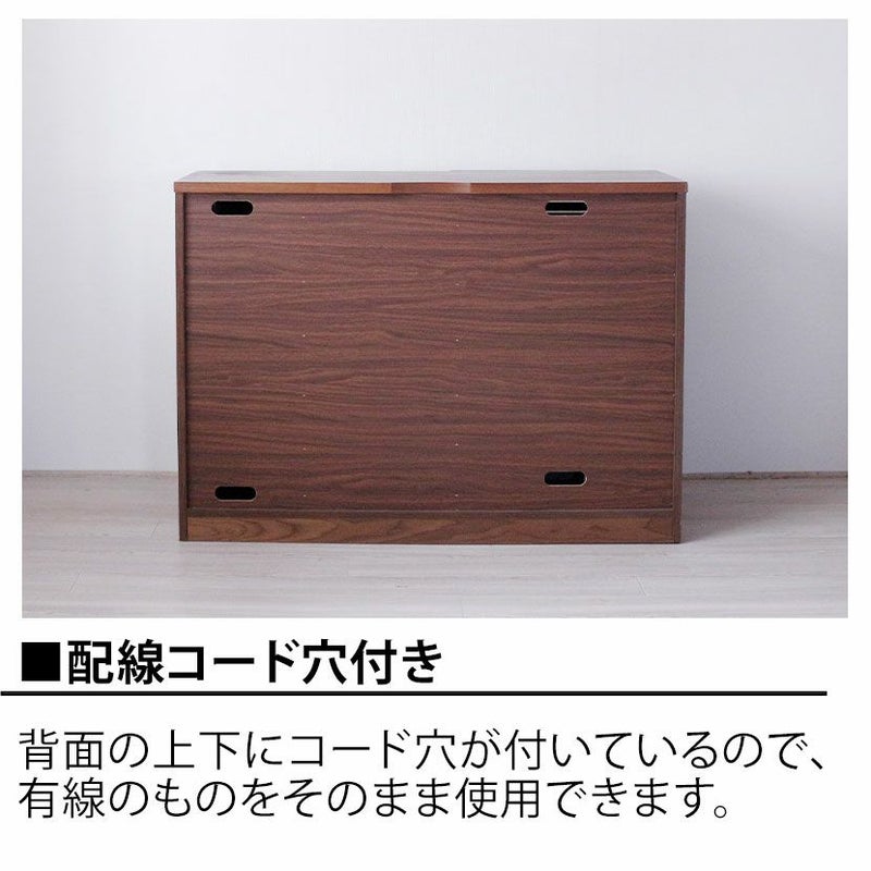 配線穴が4ヵ所あるので、有線の機器類を収納したまま配線が可能です。