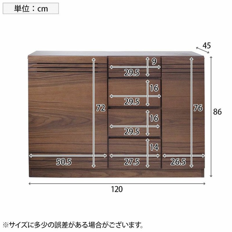 A4用紙が入るサイズの引き出しが4杯付いています。