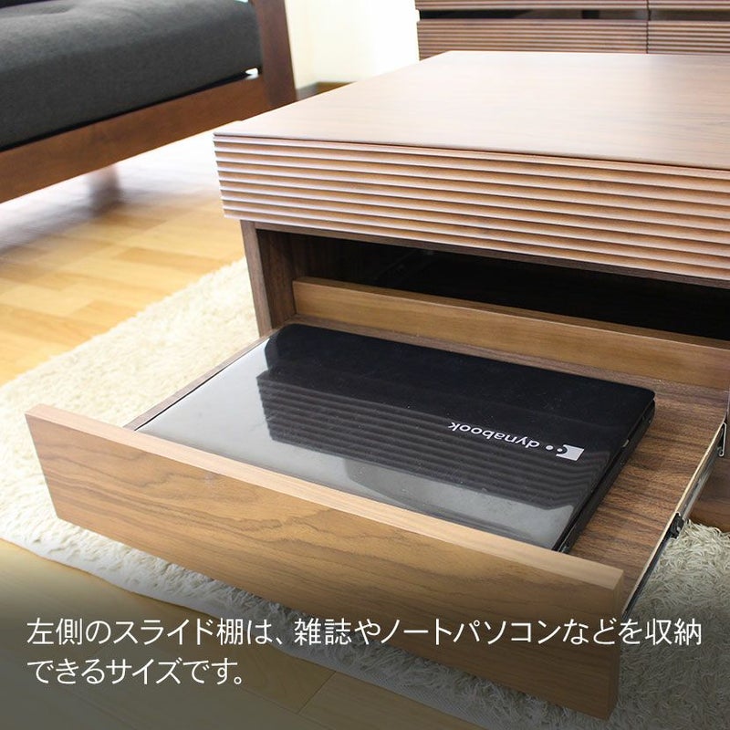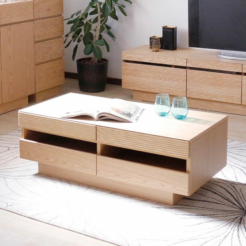 天板には天然木を素材に使用した突板、前板には無垢材を使用しています。