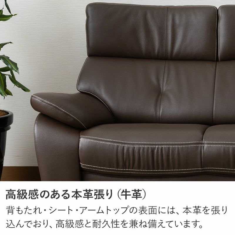 背もたれ・シート・アームトップの表面には、本革を張り込んでおり、高級感と耐久性を兼ね備えています。