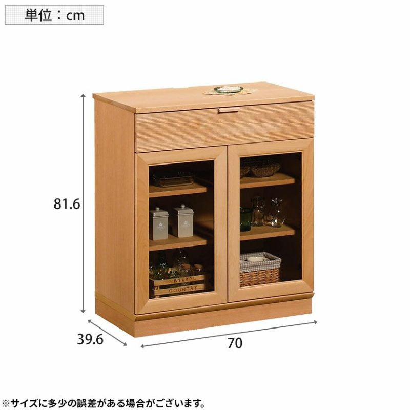 ガラス扉の内部には可動棚が2枚付いており、収納するものに合わせて高さを変更できます。(32mmピッチ)