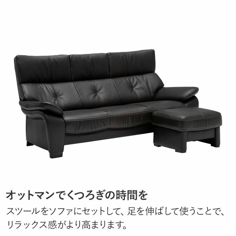 脚部にはオーク天然木を使用。レザーの重厚感にぬくもりを加えた、足元にまでこだわった仕様です。