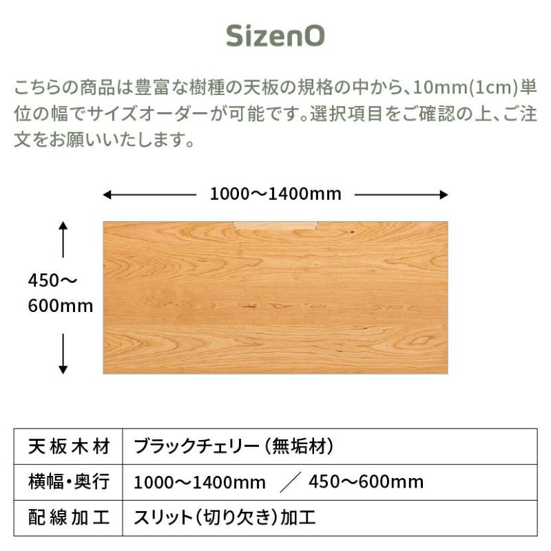 幅100~140cm サイズオーダーデスク Sizeno(シゼノ) パソコンデスク ブラックチェリー 無垢材 木製 A字脚 スチール脚 天然木 パソコンデスク 切り欠き オフィスデスク テレワークデスク 勉強机 おしゃれ 北欧モダン 書斎 ナチュラル