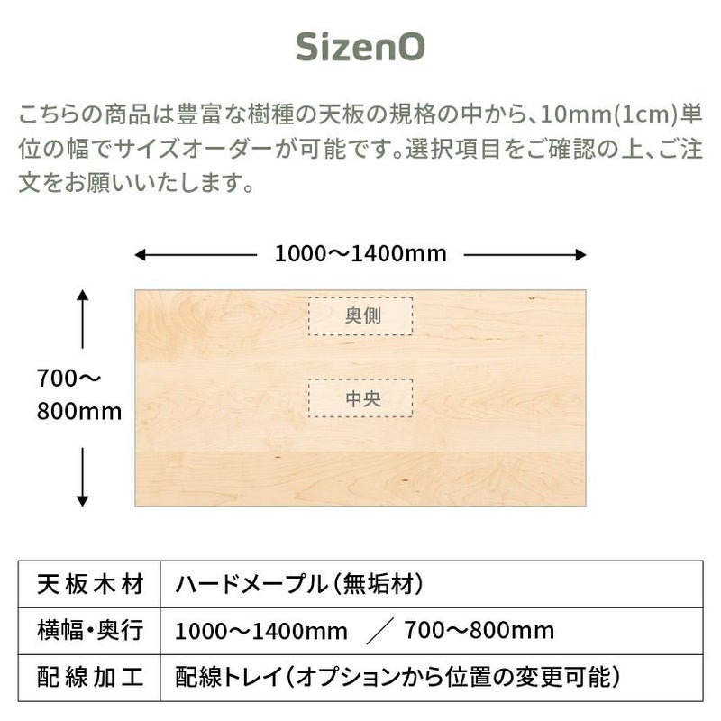 幅100~140cm サイズオーダーデスク Sizeno(シゼノ) パソコンデスク ハードメープル 無垢材 木製 A字脚 スチール脚 天然木 パソコンデスク 配線穴 オフィスデスク テレワークデスク 勉強机 おしゃれ 北欧モダン 書斎 ナチュラル