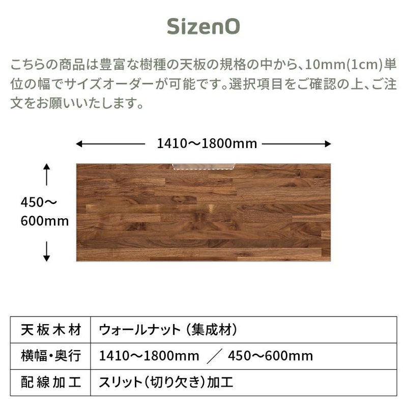 幅141~180cm サイズオーダーデスク Sizeno(シゼノ) パソコンデスク ウォールナット 集成材 木製 A字脚 スチール脚 天然木 パソコンデスク 切り欠き オフィスデスク テレワークデスク 勉強机 おしゃれ ウッディモダン 書斎 ダークブラウン