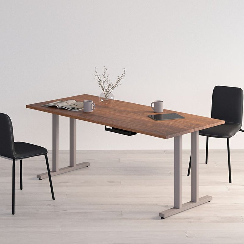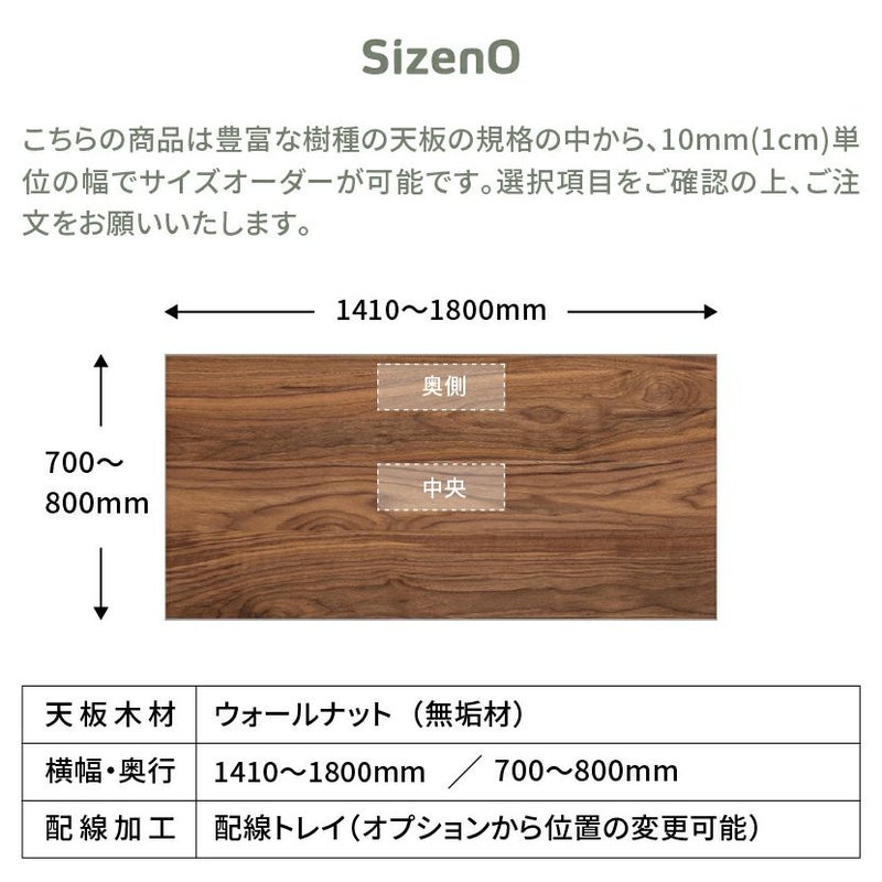 幅141~180cm サイズオーダーデスク Sizeno(シゼノ) パソコンデスク ウォールナット 無垢材 木製 T字脚 スチール脚 天然木 パソコンデスク 配線穴 オフィスデスク テレワークデスク 勉強机 おしゃれ ウッディモダン 書斎 ダークブラウン