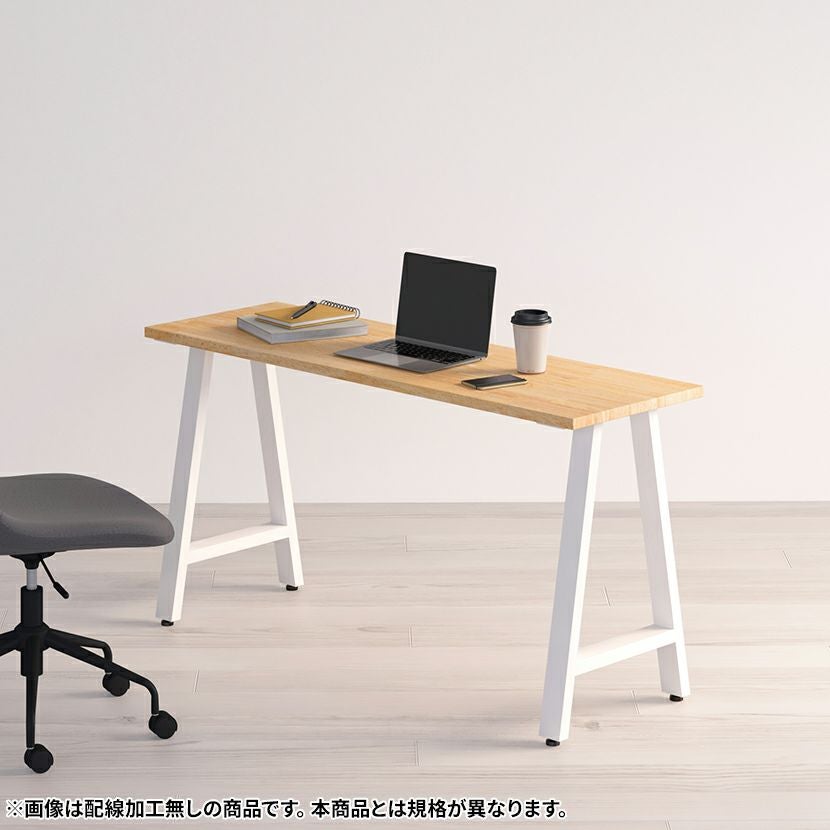 スリット(切り欠き)加工は天板の長辺片側に、コードが通るほどのスリットのある規格です。配線収納トレイ付きの加工は、天板中央と奥側の位置が選択できる規格となりますので、お客様の用途に合わせてお選びいただけます。