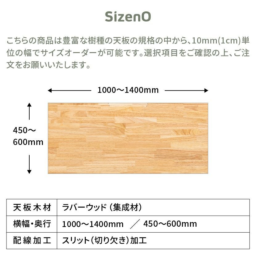 Sizeno(シゼノ)は天板のサイズが1cm単位で自由に選べます。(※天板の規格の範囲内で選択可能。)