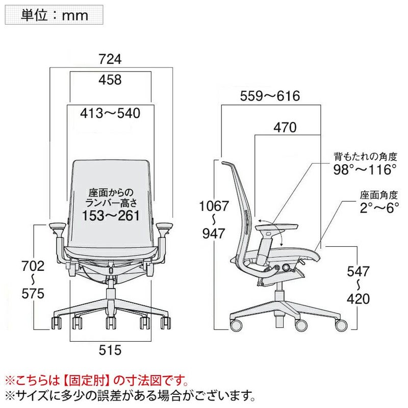 | サイズ | 幅724×奥行559~616×高さ947~1067mm 座面高さ / 420~547mm |