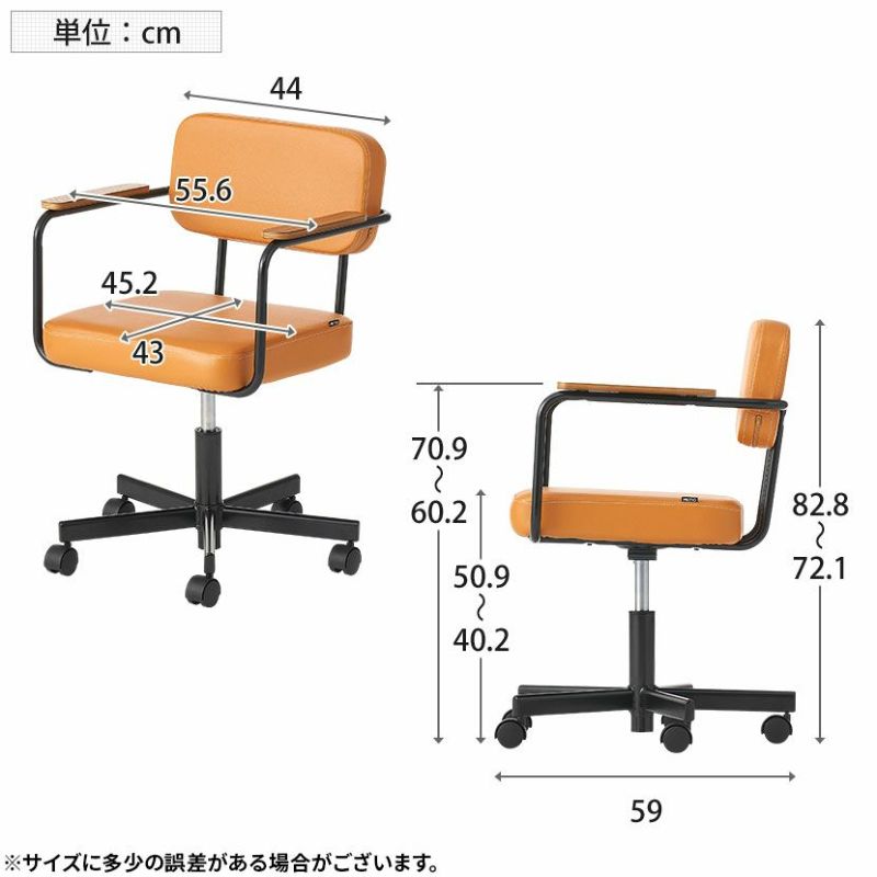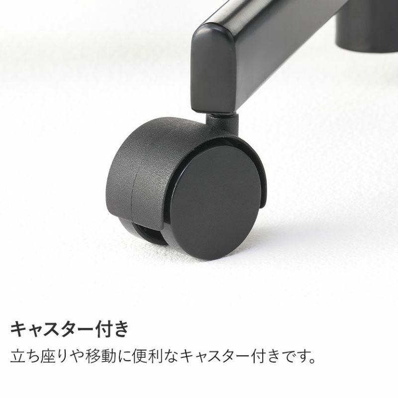 ガス圧式昇降機能がついているので、デスクや体格に合わせて座面の高さを無段階で調節できます。