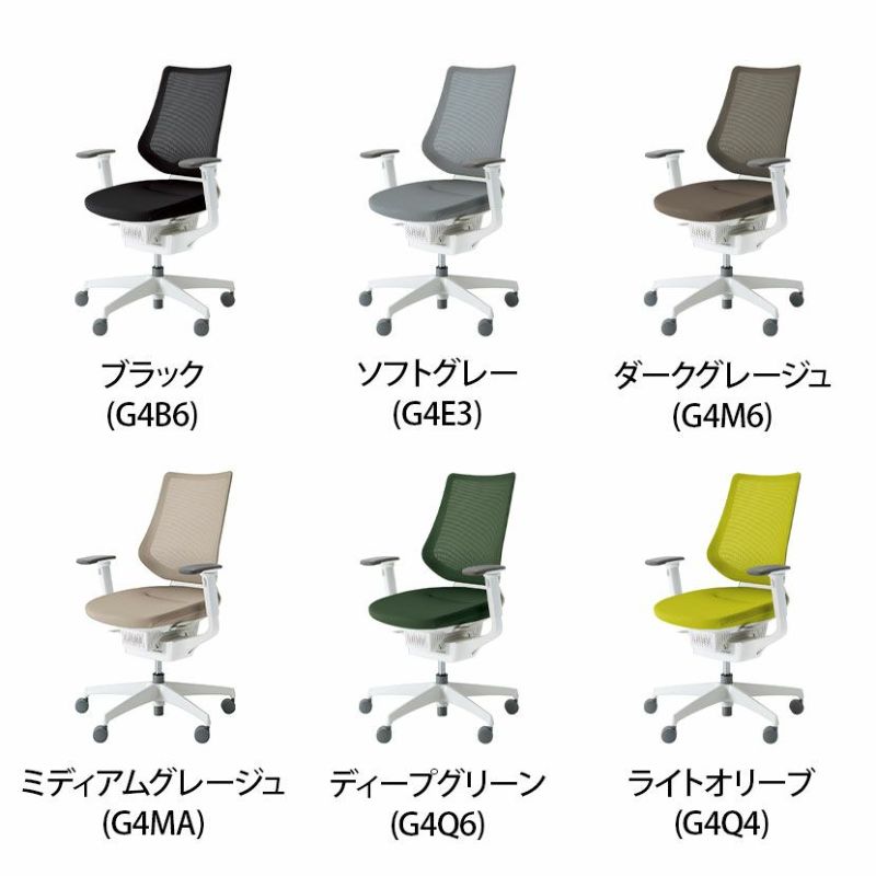 | 材質 | 背枠 / 強化ナイロン 張り地 / ポリエステル弾性メッシュ 座板 / ポリプロピレン 座張り地 / ポリエステル 座クッション / モールドウレタン 肘 / 強化ナイロン、ポリウレタンスキンモールド 脚羽根 / 強化ナイロン |