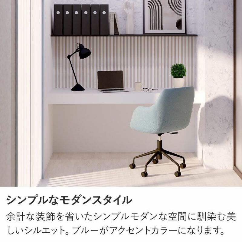 余計な装飾を省いたシンプルモダンな空間に馴染む美しいシルエット。ブルーがアクセントカラーになります。