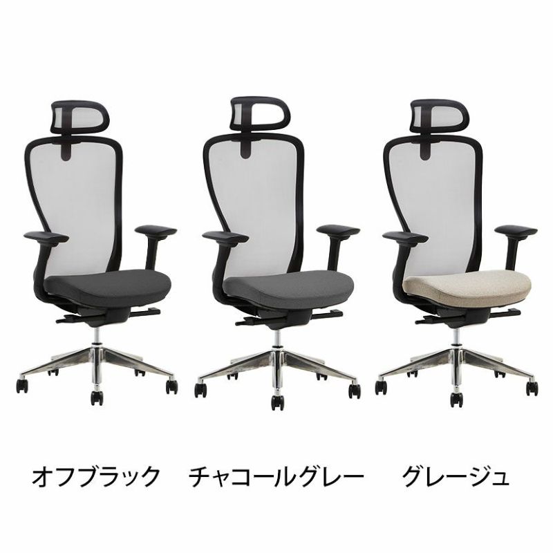 | 機能・特徴 | 座面昇降機能 座面スライド(奥行調節) シンクロリクライニング(最大124.8度・4段階) ヘッドレスト高さ調節(可動域70mm) 4Dアームレスト(上下・前後・角度・左右) |