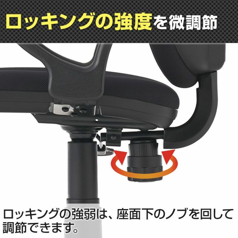 ロッキングの強弱は、座面下のノブを回して調節できます。