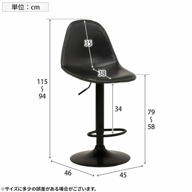 昇降 カウンターチェア 回転 椅子 合皮 背丸タイプ バーチェア ハイスツール 背もたれ付き ハイチェア おしゃれ カフェ風 ヴィンテージ風 ブラウン ブラック 黒