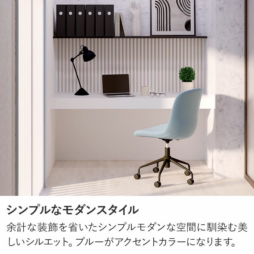 余計な装飾を省いたシンプルモダンな空間に馴染む美しいシルエット。ブルーがアクセントカラーになります。